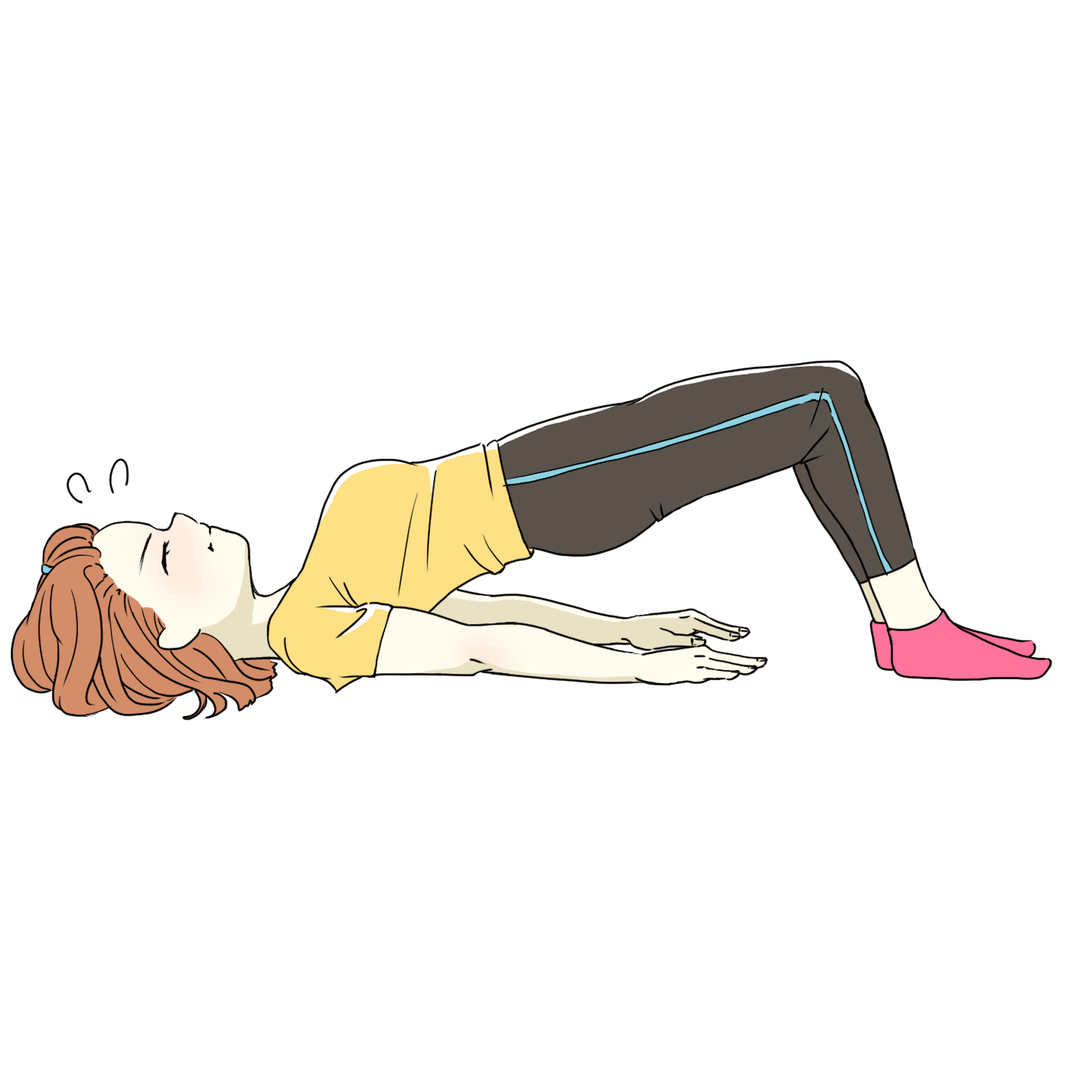 仰向けになって膝をたてて寝転んだらお尻を 浮かせてキープ!